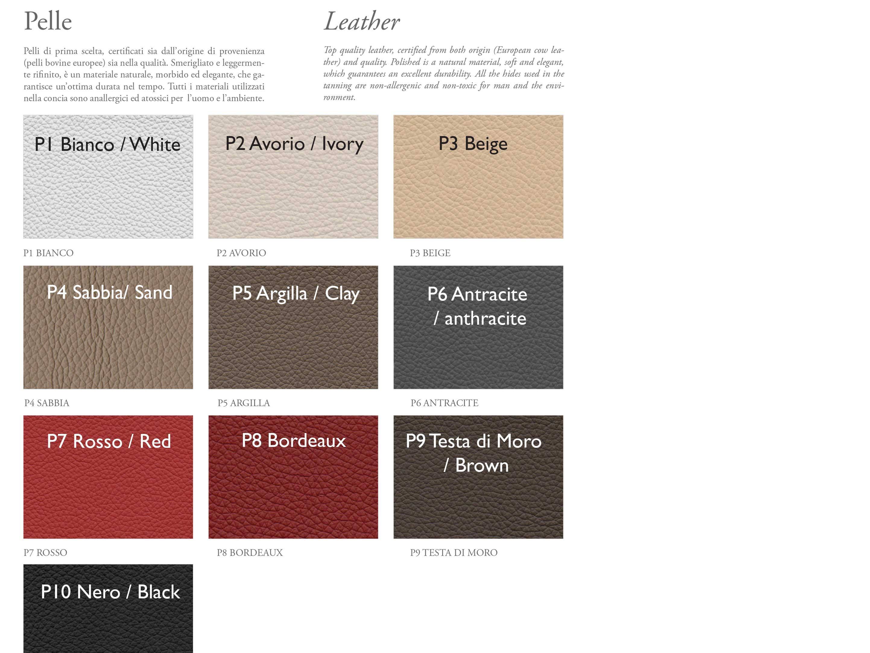 Several colours available (See the image with the colour palette) Specify the name and the code of the colour chosen in the "Notes" field during the order. The stitching can match the leather colour or contrast with it.