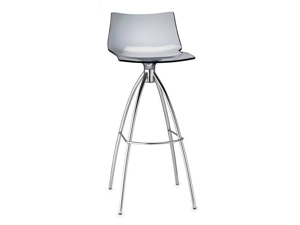 Stool with recyclable polycarbonate seat. Chromed steel structure. For indoor use.SIZE:L. 43 W. 47 H. 103 H. seat 80Box packaging N° 1 product.