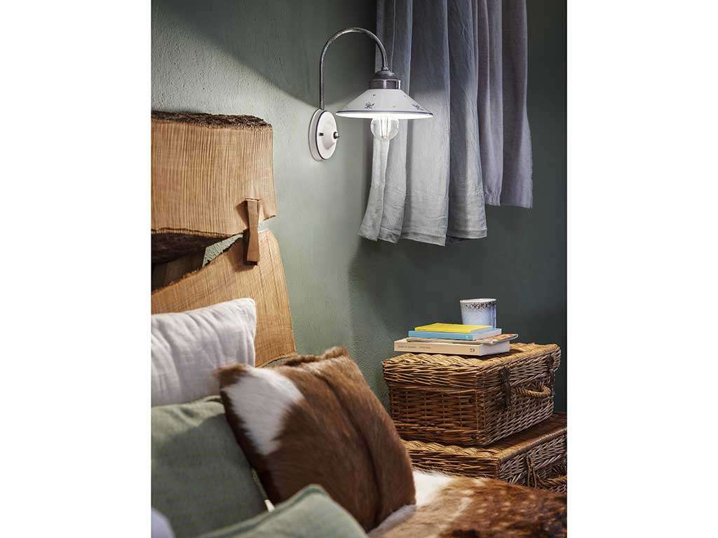Decorated ceramic wall lamp, ceramic lamp , with distinct colors and glossy surfaces, for a vintage style furnishing.