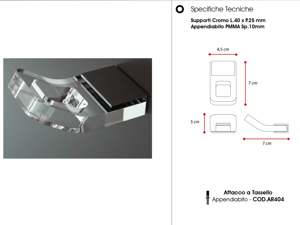VARIOUS ELEMENTS SIZE: Towelbar - L 30 x P 10 cm Thickness 10 mm - L 40 x P 10 cm Thickness 10 mm - L 50 x P 10 cm Thickness 10 mm - L 60 x P 10 cm Thickness 10 mm Rectangular Shelf - L 30 x P 10 cm Shelf thickness 10 mm - L 40 x P 10 cm Shelf thickness 10 mm - L 50 x P 10 cm Shelf thickness 10 mm - L 60 x P 10 cm Shelf thickness 10 mm Single Coat rack - Wall distance 7 cm L 4.5 x P 7 cm Thickness 10 mm Double Coat rack - Wall distance 7 cm L 13,5 x P 7 cm Thickness 10 mm Soap dish holder - L 13 x H 10 cm Thickness 10 mm Tooth-mug holder - Base L 10 x H 10 cm - Mug H 10 cm Thickness 10 mm Tooth-mug holder shelf - Shelf L 20 x P 10 cm - Mug H 10 cm Thickness 10 mm Toilet paper holder -L 15 X P 9,5 X H 6 cm Thickness 10 mm Dispenser holder - Base L 10 X P 10 cm Thickness 10 mm - Dispenser H 16 cm Dispenser holder shelf - Shelf L 20 cm x P 10 - Dispenser H 16 cm