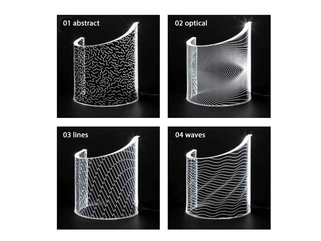 Design lamp, bedside table lamp, design bedside lamp, living room table lamp, perfect as modern bedside lamp or living room table lamp.Half is an elegant table lamp, realised with a unique acrilyc crystal sheet (Plexiglas), bended by hand and engraved with laser technology.