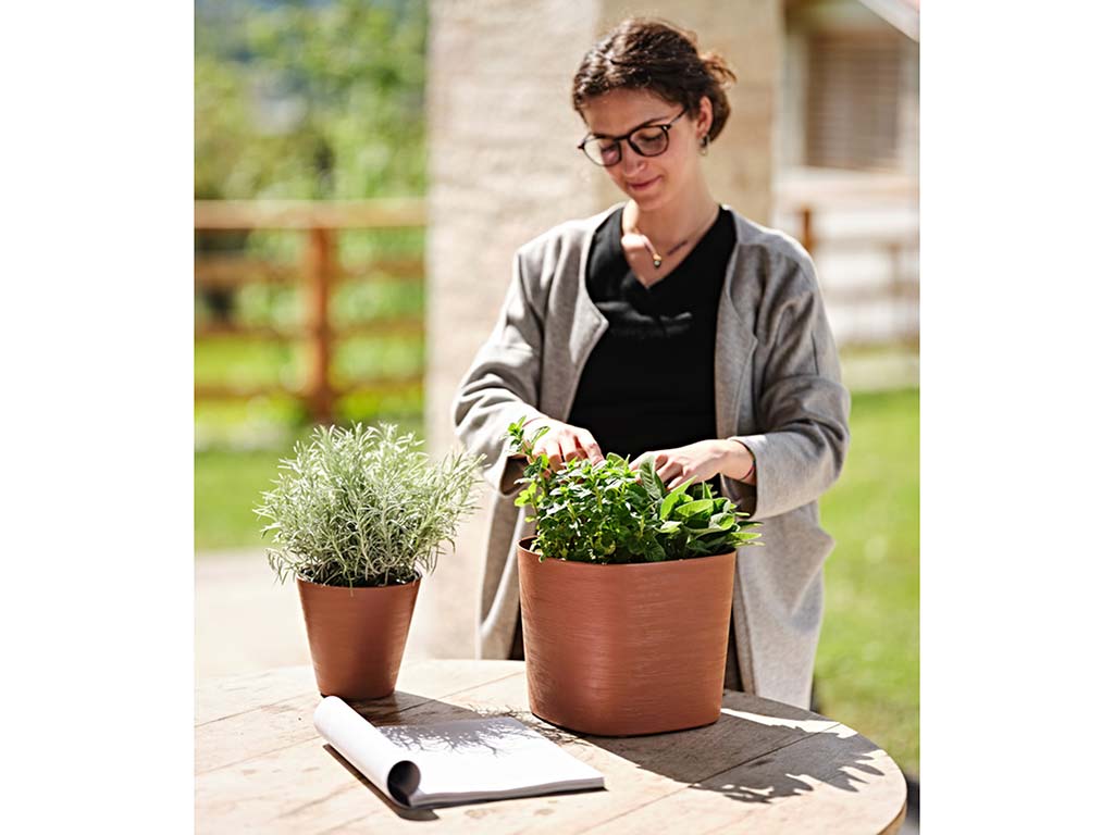 To the touch, the surface is pleasant, slightly rough and opaque, which conferes to the pots a modern and elegant aesthetics, with a reference to natural materials.