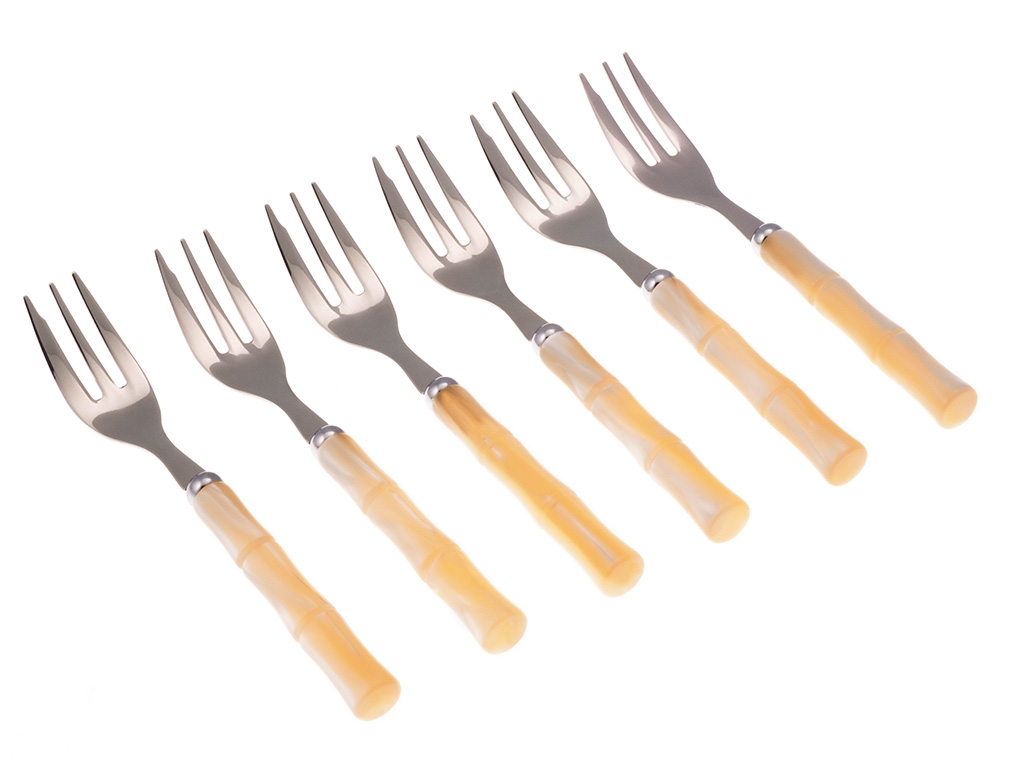 Set of 6 Dessert Forks with Bamboo-Effect Handle – Ivory or Olive Green