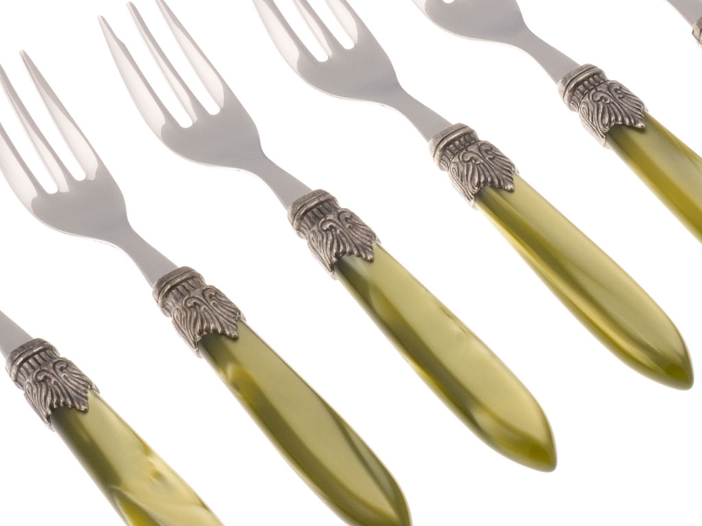 Set of 6 Dessert Forks in Stainless Steel with Mother-of-Pearl Effect Handle