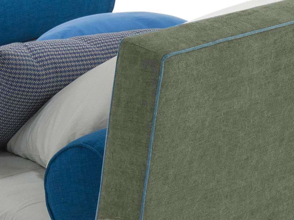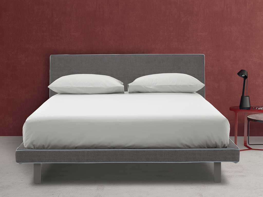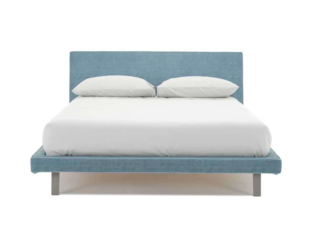 Double bed design, modern design bed with minimal Japanese style. The bed is covered with denim effect fabric, with wooden foot in aluminum color and bed frame with blue border. Available only in the version without container. Dimensions: Double bed cm L 240 D 181 headboard H 89 cm - Bed base cm 160 X D 200 cm Bed frame H 9 cm Foot height 21 cm Removable bed frame - Removable headboard - Bed base included Also available in 120 cm bed or single bed versions.