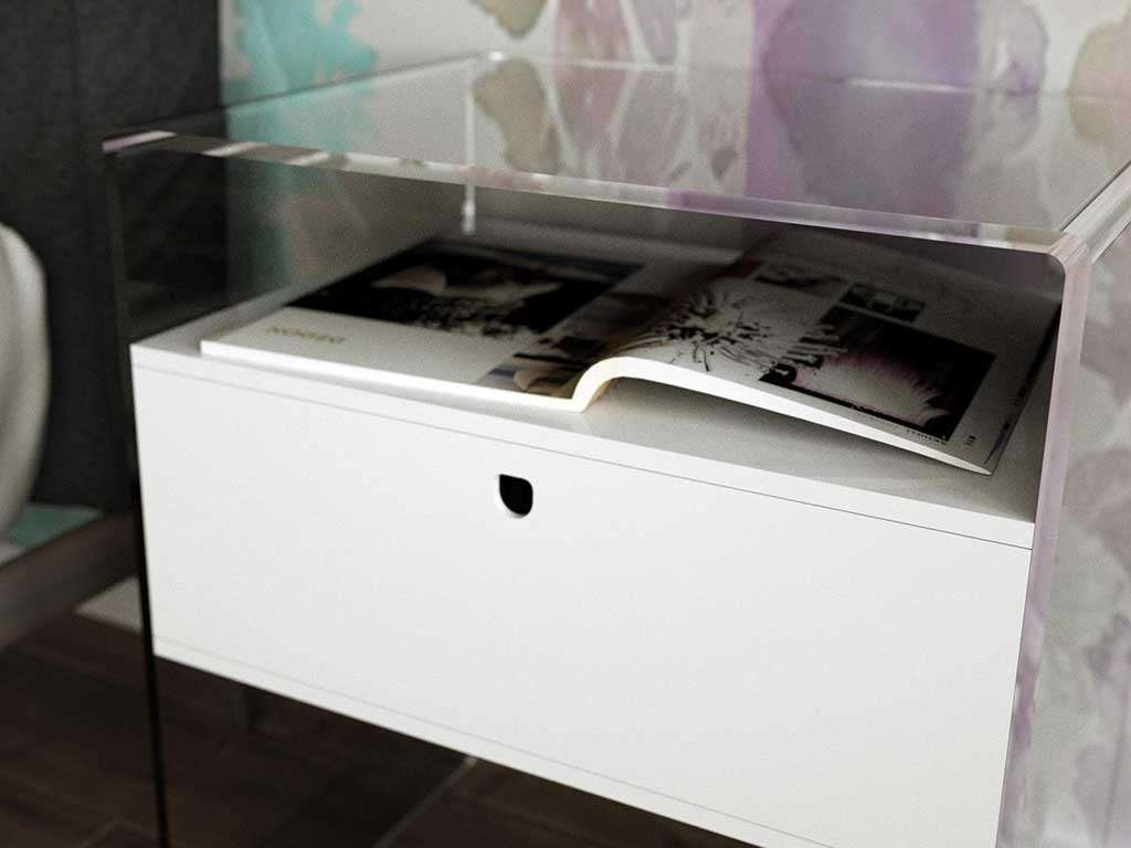 Drawer bedside table, acrylic glass modern bedside table, suitable as bedroom bedside table, or coffee table next to the sofa, in order to store books and magazines.