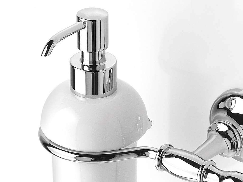 Elegant soap dispenser, wall soap dispenser, bathroom soap dispenser, suitable as stylish bathroom accessories, classic bathroom accessories.Available with white ceramic or satin glass dispenser.