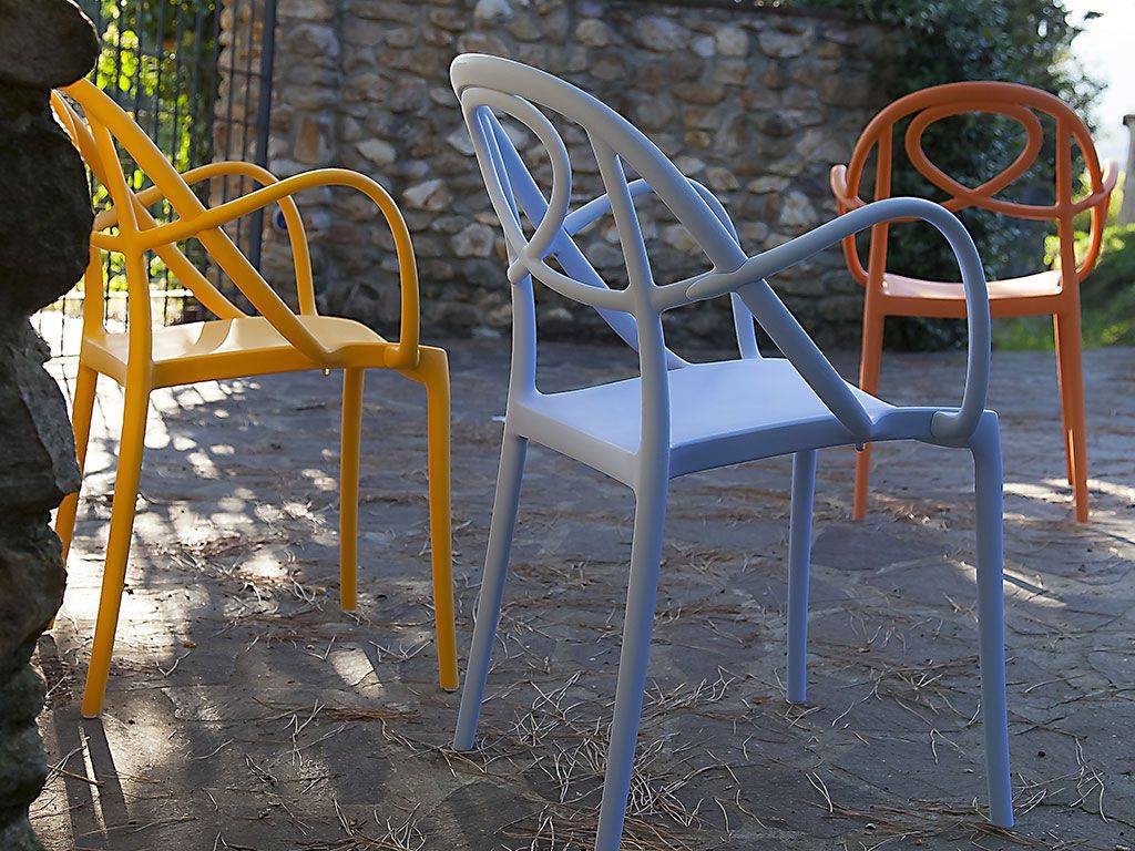 Armchair in polypropylene, light and stackable, available in different modern colors, it is original and with personality. Suitable both for outdoor and indoor use, in the kitchen or in a fizzy living room.
