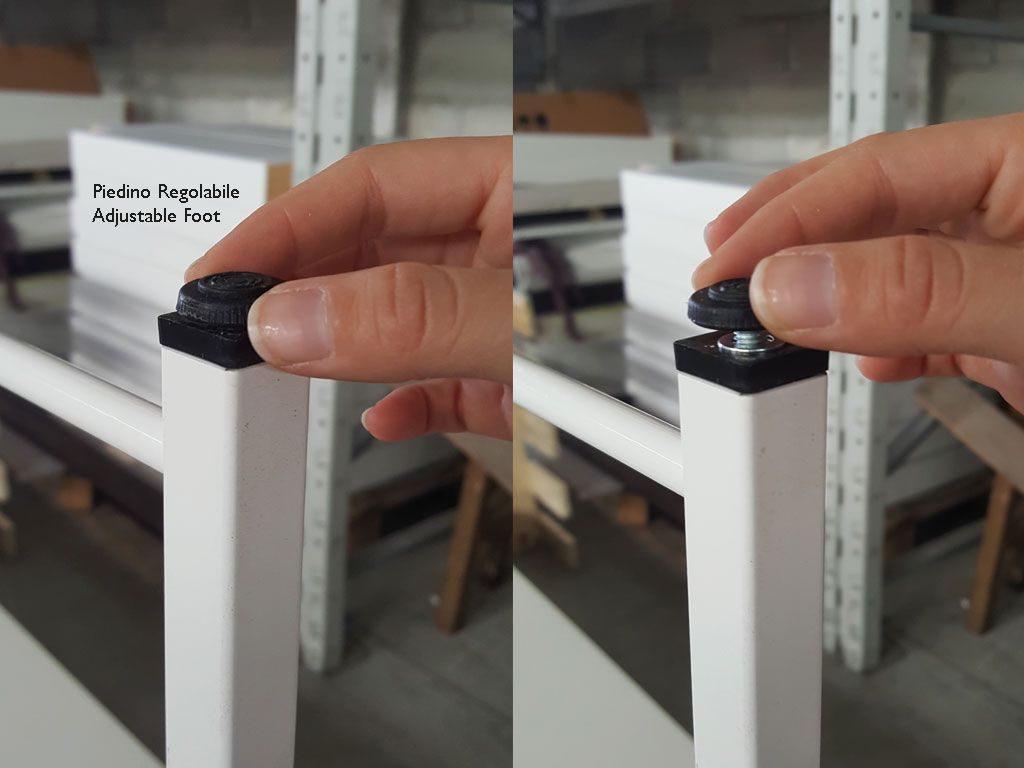 The 5-extensions version is supplied with a convenient retractable balancing support to stabilize the table in its maximum extension.