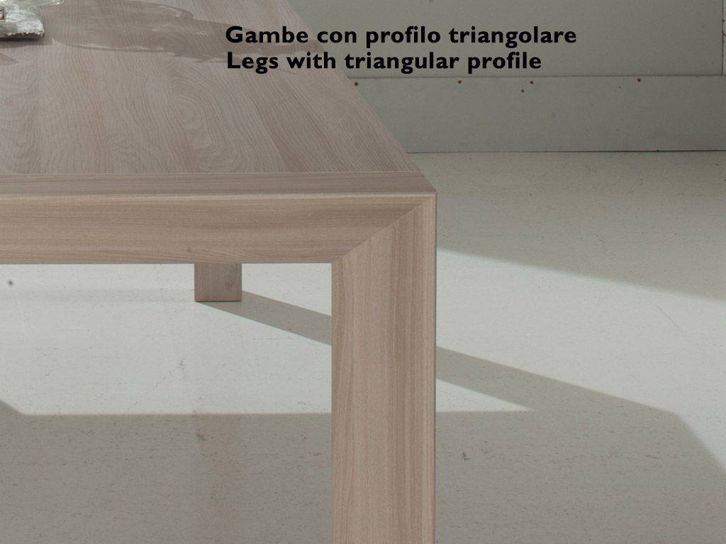 Rectangular table, extendible table, table 160x 90, wooden rectangular table, perfect as kitchen table.In the extendible rectangular table Delta with a melamine covering, the elegancejoins the functionality and it pleases every need, while decorating with style and refinement.Delta is the right table for people who believe that it is important to please the eye, thanks to its triangle-shaped legs with a sophisticated design. Delta is also the right table for people who furnish the house with attention and care.This table, when closed, is 160 cm but has two extensions of 40 cm each so you can regulate the length according to your needs. It can reach 240 cm and it can fit up to 10 persons.