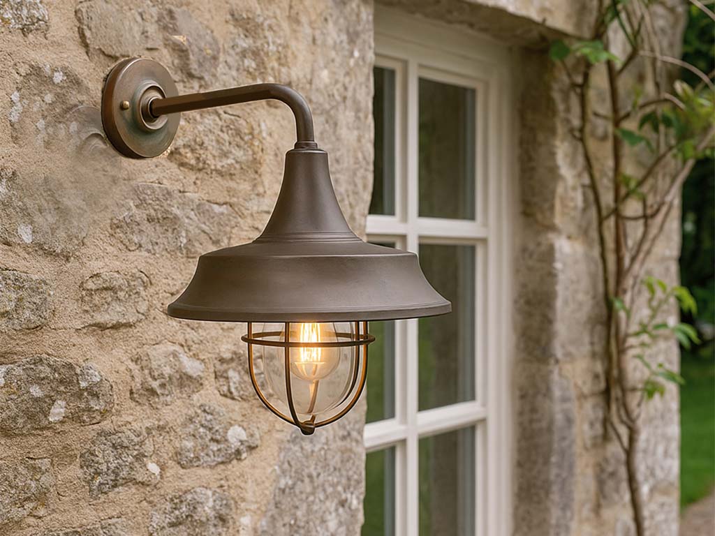 Outdoor house lamps, outdoor brass lamp, outdoor lamp with arm, ideal as outdoor house lights or outdoor wall lights. Die-cast brass Lamp, suitable for outdoor areas in vintage style, such as farmhouses and villas, and for an industrial or nautical vintage style. Dimensions: P 36,6 H 37 cm - lamp shade Ø32 - wall mount Ø11 cm Glass: Transparent ( .T ) or Opal Glass ( .O ) Finish: Aged brass (.AR) Burnished brass (BA) Level of protection IP44. In the E27 lampholder, it is possible to install LED lightbulb, in order to allow a greater energy saving. Energy efficiency A+÷E LIGHT BULB NOT INCLUDED Made in Italy product The ageing of our products is performed manually, therefore the colouration of the brass may differ from that shown in photography. The manual ageing process does not prevent the natural oxidation of the metal, which, if exposed to the elements, may be subject to natural tarnishing. Our products are not self-cleaning, therefore, if exposed to salt or other corrosive substances, they should be cleaned with ordinary metal cleaning products. After cleaning, the products should reassume the typical patina of aged brass. This product is made with the utmost care for details, for the resistance of materials and for the quality of the finish, in order to create each time a unique item. It is manufactured by skilled craftsmen,who, with their professionalism, are part of the quality of Made in Italy.