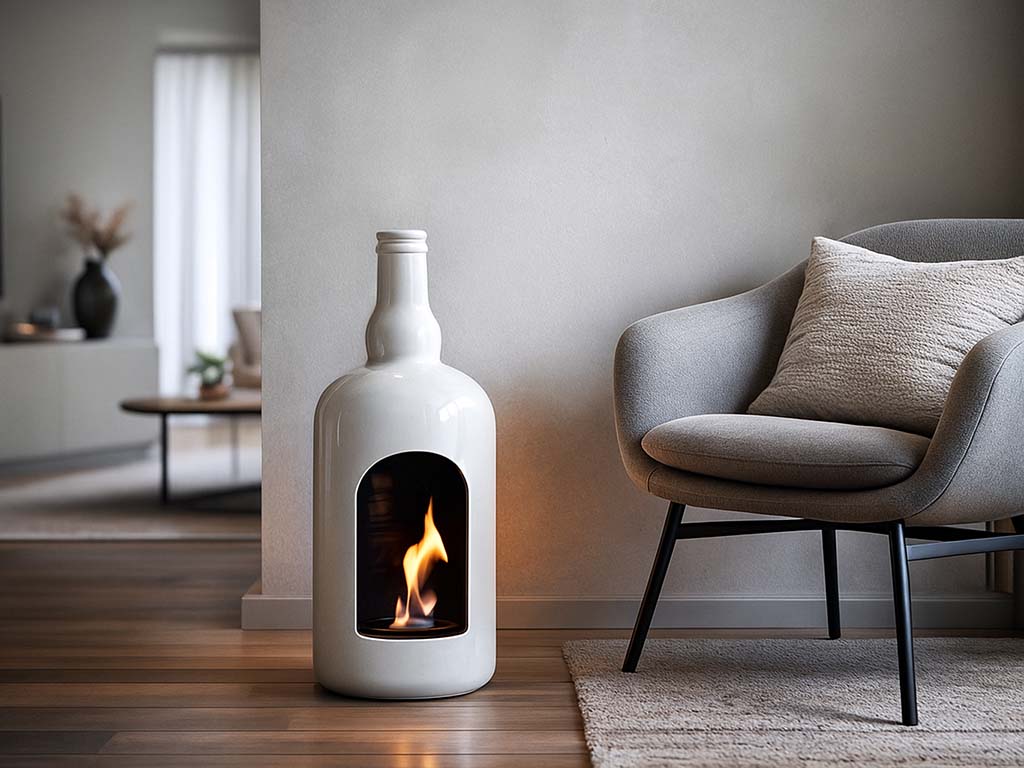 Fireplace in ceramic, hand-made Fireplace in majolica, realised with 2 firings. Bioethanol combustion. With each fireplace you will receive also a shovel to extinguish the flame and a steel tank.