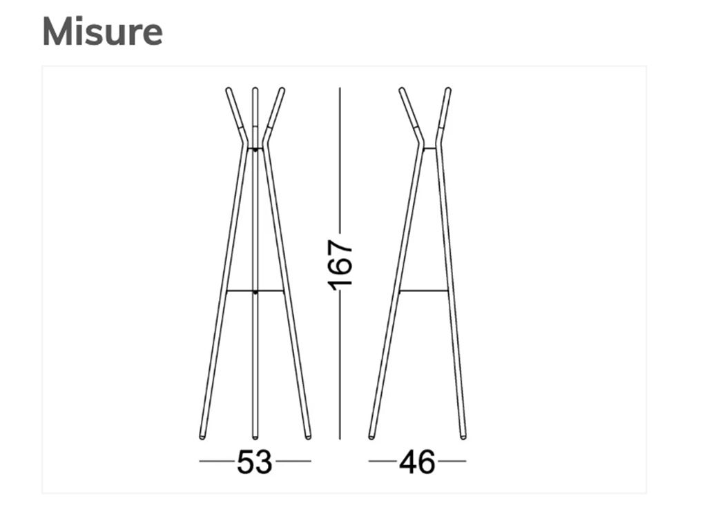 The Tipi freestanding coat rack is a modern and functional furnishing accessory, designed to keep entryways, bedrooms, offices and professional spaces tidy with style. Its clean lines and lightweight yet stable structure make it suitable for both contemporary interiors and more classic settings seeking a minimalist touch.