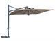 Umbrella with retractable lateral arm. Aluminium structure and steel components; charcoal dusts varnished. Nylon accessories. Steel bases included, with no counterweight.