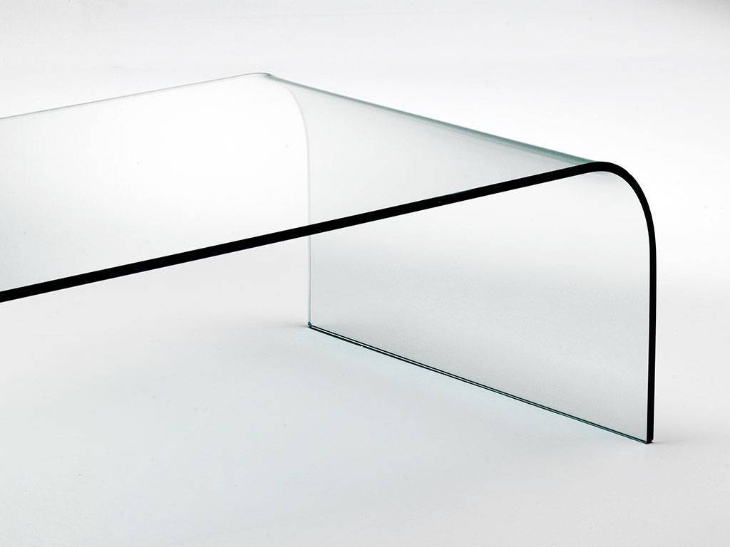 This curved glass coffee table features a rectangular shape with bent crystal glass. It’s perfect as a modern or designer living room table.