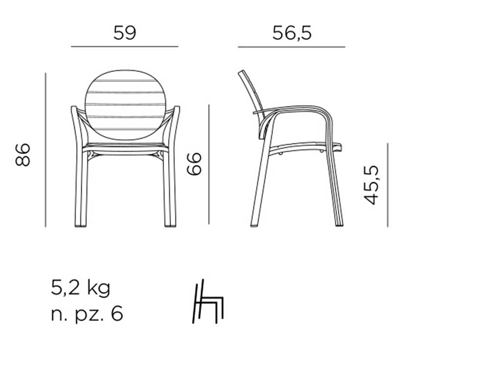 garden chairs in plastic (polypropylene), stackable garden chairs, ideal as terrace chairs with armrests or as chairs for outdoor use.
