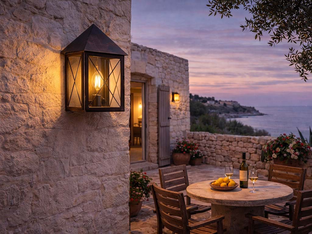 Garden lantern, perfect as large size outdoor wall lantern, with transparent glass and Bronze or Dark Bronze frame. Suitable both as indoor lamp and covered outdoor lamp. The lamps are attached to the wall through a special slot on the back of the lamp. Ideal for historic residences, old country cottages and places full of charm and refined design. DIMENSIONS: Lamp H 49.5 L 29.5 x D 18 cm