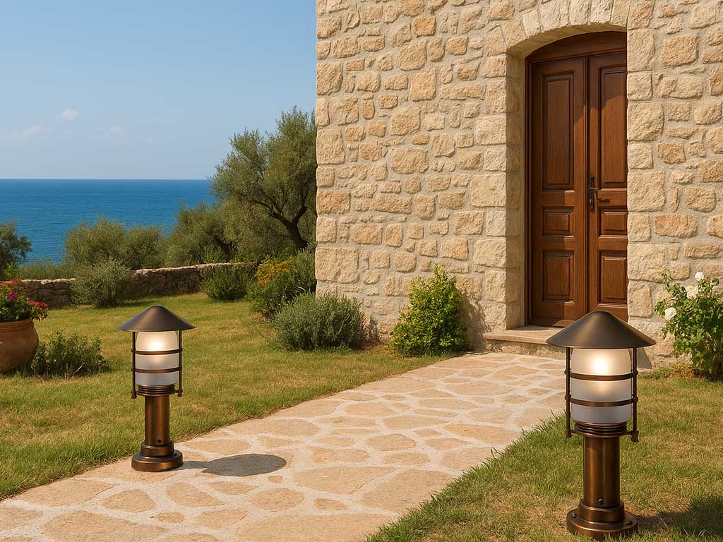 Garden light post, small garden lamp post, vintage garden lamp, perfect as outdoor lamp post or driveway lights. Line of lamps for outdoor use with burnished brass structure and transparent, glossy white or brushed white glass. High quality lamps with finishes that last over time, particularly suitable for villas, houses by the sea or elegant historic homes. Each item is realised with care and passion, it is enhanced by small distinctive features, typical characteristics now exclusive of craftsmanship. Dimensions: 3 measures available 194/1-PC - Ø 18 x H 41 cm 194/1-MD - Ø 18 x H 56 cm 194/1-GR - Ø 18 x H 76 cm max 70W E27 - IP44 - 220-240V (lightbulb not included) Colors and Finishes: BR – burnished Glass: Transparent glass Glossy white glass Brushed white glass The ageing of these products is done manually so the color of brass may have different shades from those represented in the picture. These products are handcrafted with traditional and quality materials such as brass, expertly created by hand in order to obtain small and large lighting effects with a unique design and high quality finishes that last over time. Glass, blown by master craftsmen according to ancient processing techniques. Any small imperfections are to be considered as merits and traits of the refined workmanship and not manufacturing defects. Outdoor products are treated to live even near the sea. Made in Italy Product