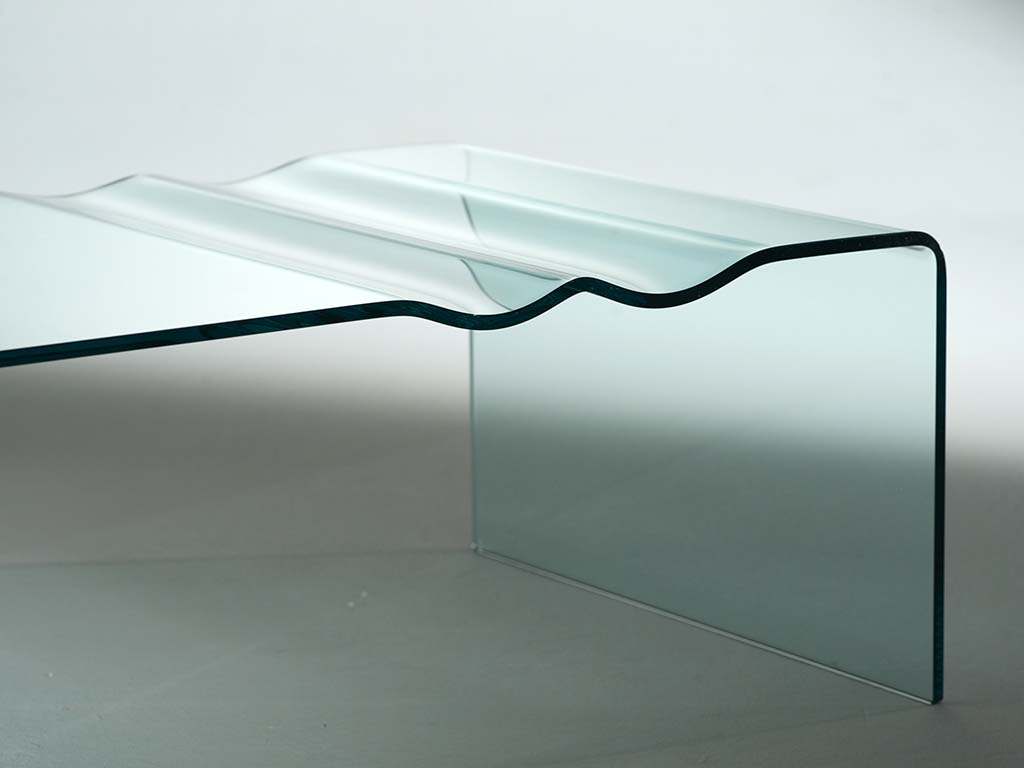 Once softened, the glass naturally conforms to a custom-made mold by gravity.