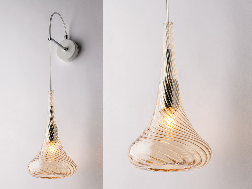 Illuminate your spaces with elegance and sophistication thanks to this modern and refined blown glass wall lamp. Carefully crafted to combine timeless craftsmanship with contemporary design, this wall light adds a touch of luxury to any environment. Its sinuous, fluid shape enhances the beauty of interiors, creating soft and captivating lighting effects that elevate the atmosphere. Perfect for both private homes and contract spaces, this lamp gracefully adapts to different contexts—from cozy living rooms and bedrooms to elegant restaurants, boutique hotels, and refined reception areas.