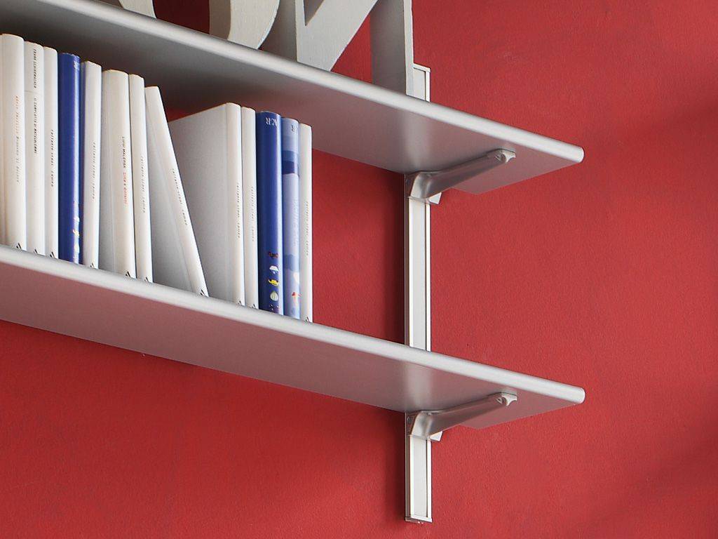 Joker is a modular practical and fast system to set up bookshelves with a great dimensional variety, very few holes and lots of creativity. Matching profiles of 50 cm, customised compositions with vertically and horizontally development are made on the wall.