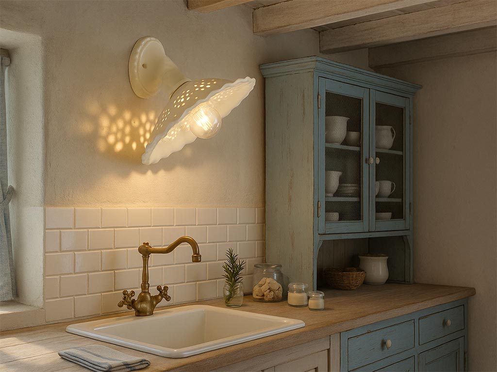 This ceramic wall light fits many styles: country, Provençal, or shabby chic.