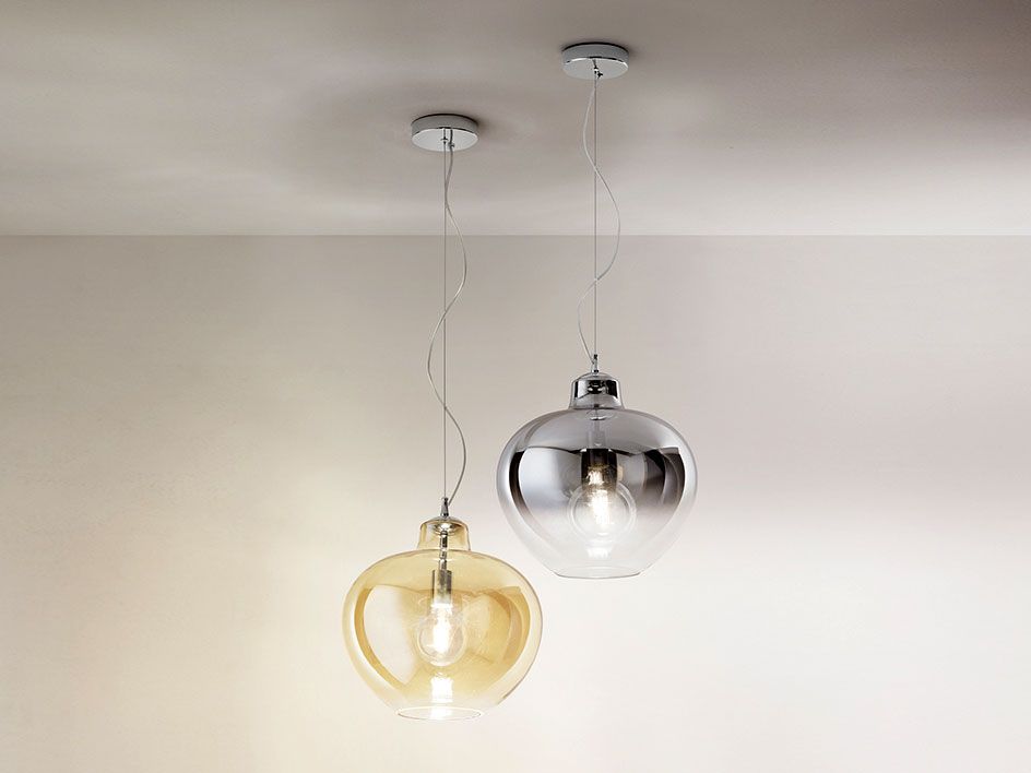 6666 AM shiny chrome and transparent amber glassØ36.5 X 40 X H.REG.150 CM 1XE27 MAX 60W