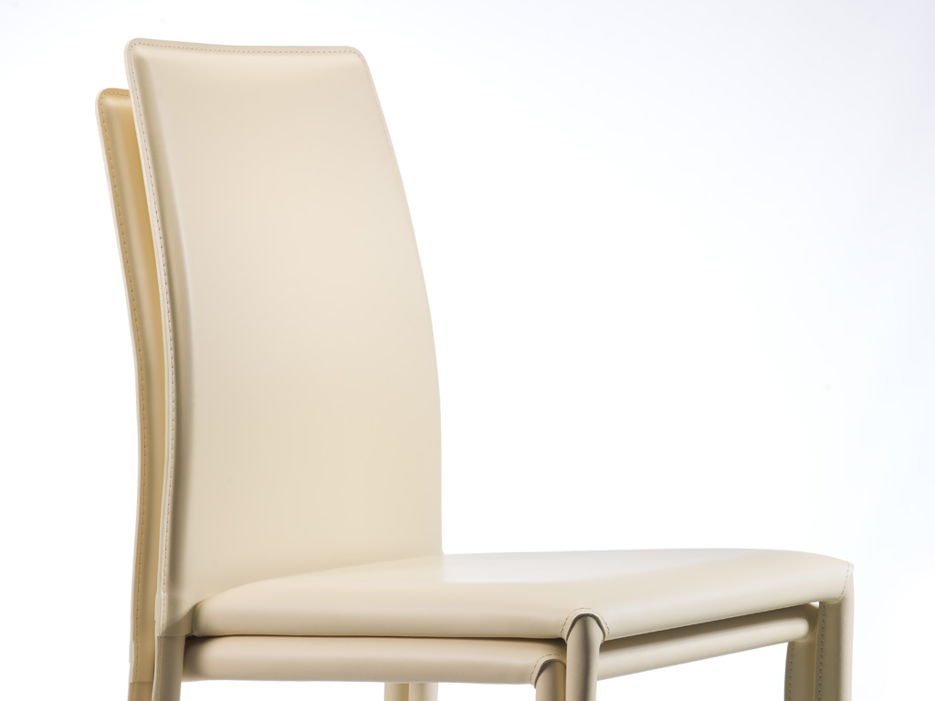 Leather chair, real leatherchiars, perfect as modern leather chairs. The chair structure is made of steel, covered entirely with leather of excellent quality. Dimensions: L 45 x D 41 H 89 - Seat H 47 cm - Kg 5 STACKABLE Pack of 2 pieces Wide range of colors available (see color sample image). At the ordering time specify in the "note field" the desired color code, visible in the color sample card which can be found in the images of the product. The seams can be chosen in THE SAME COLOR of the coating or in CONTRAST. LEATHER Leatherette of first choice, certified both from the point of view of the origin of provenance (European bovine leathers) and of quality. The leather, which is perfect for the creation of quality chairs, has been treated by master tanners, is at the same time extremely soft and durable.