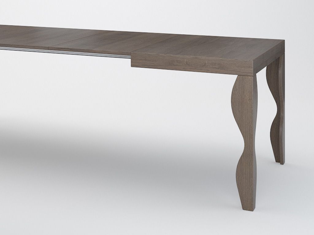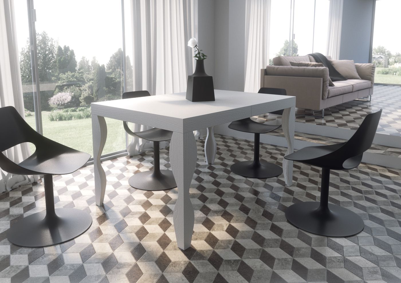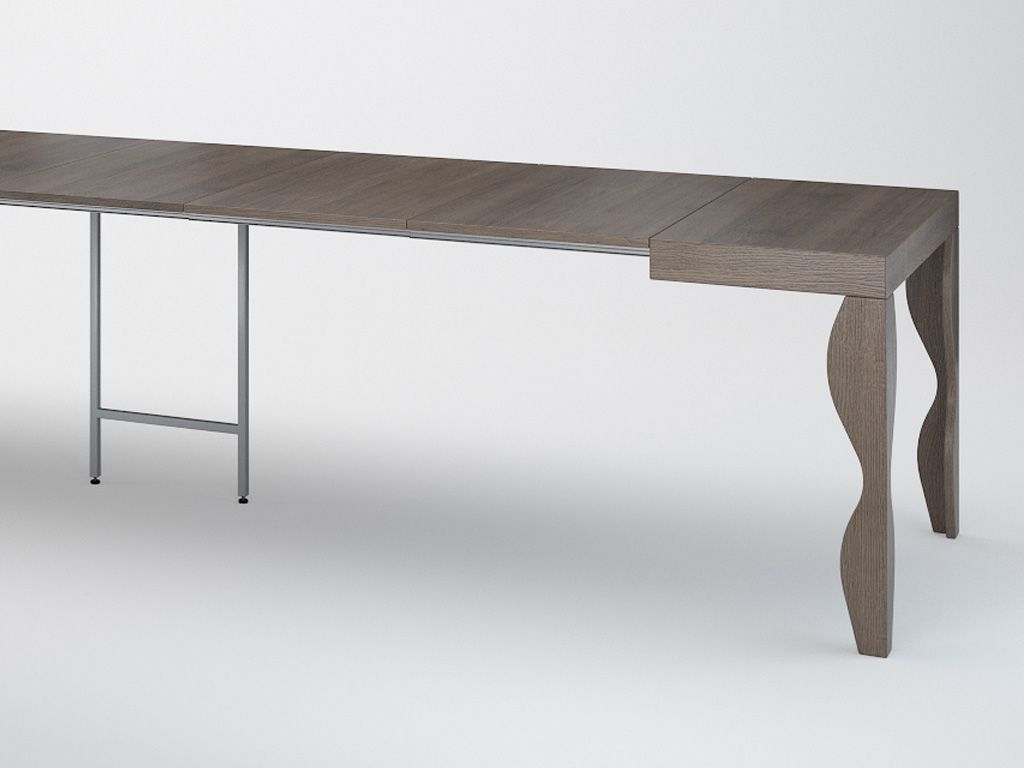Square table with 5 extensions is supplied with a convenient retractable balancing support to stabilize the table in its maximum extension.