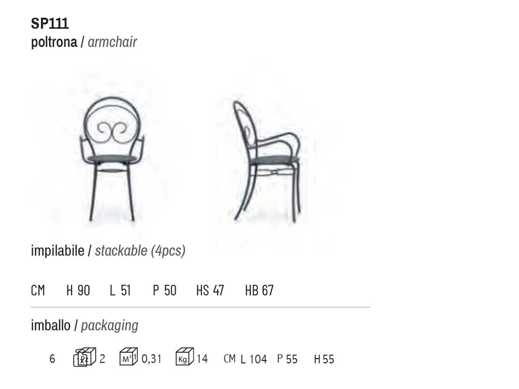 Dimensions: L 51 x D 52 seat H 46 cm - seatback H 89,5 cm - armrests H 69 cm - weight 5 Kg Stackable chair