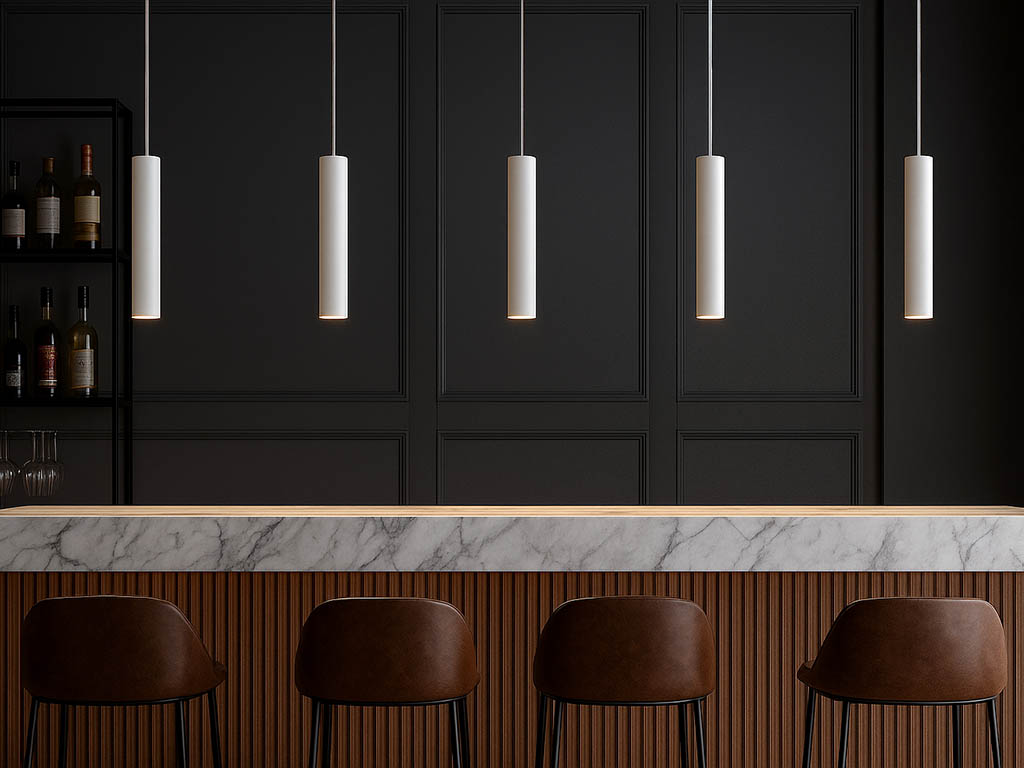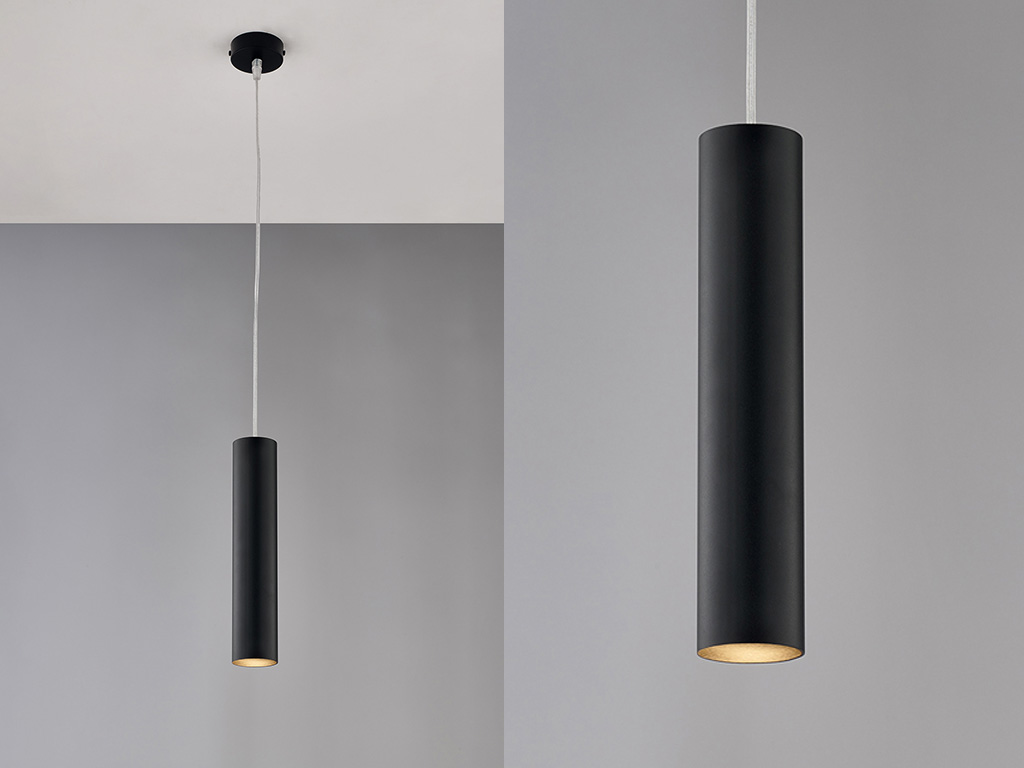This pendant lamp is an elegant lighting solution with a minimal design, ideal for modern and refined spaces. Its clean cylindrical shape, combined with high-quality finishes, makes it perfect for enhancing kitchens, kitchen islands, living rooms, dining rooms, entryways, or contemporary commercial spaces.