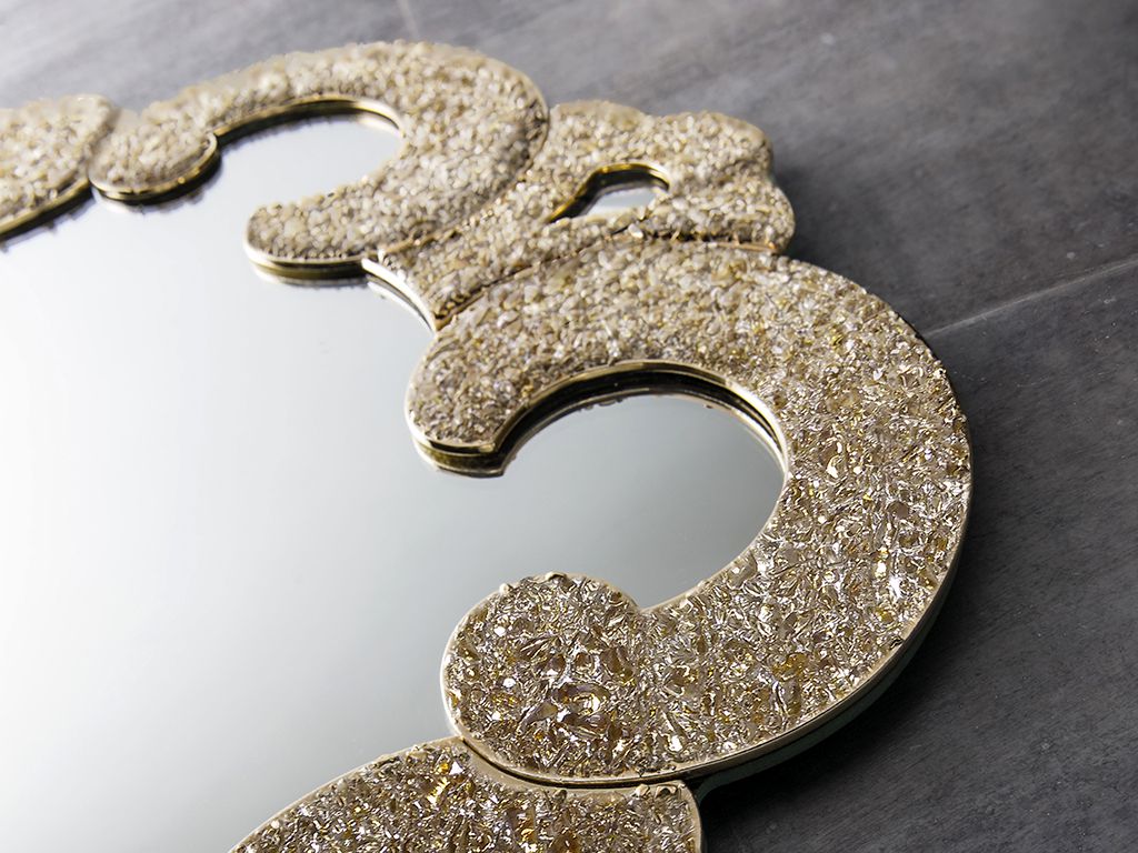 Mirror in crushed glass grit.Its elegance makes this piece of furniture ideal for the most important environments, like the entry, the living room, the bedroom or the bathroom.
