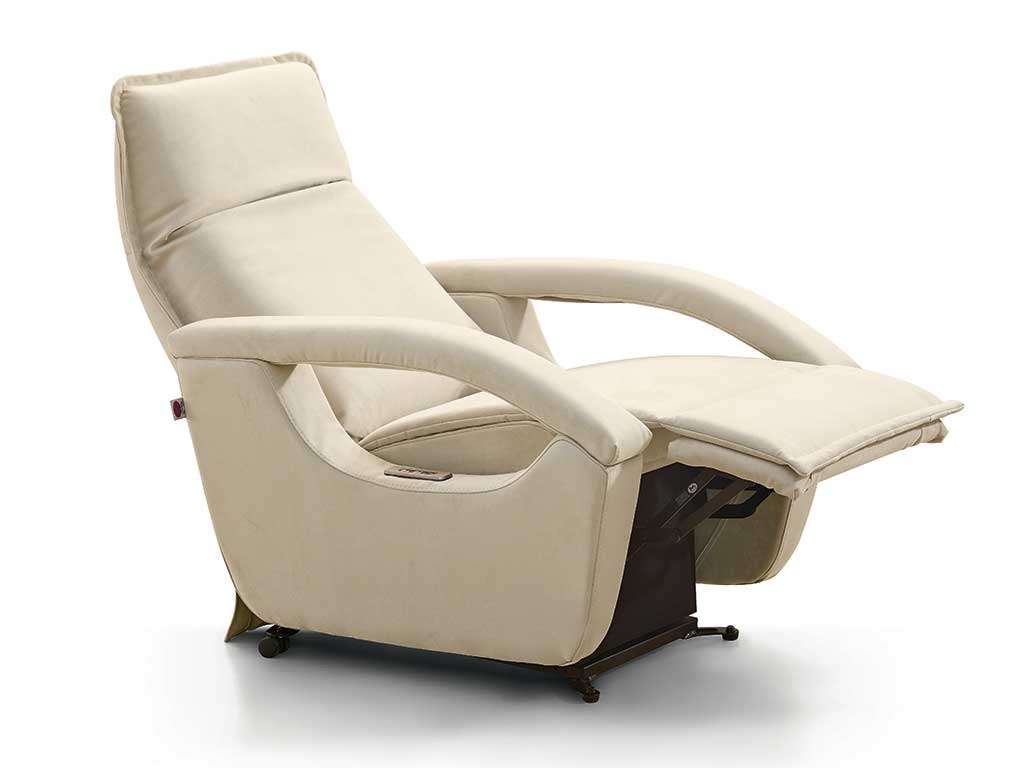 Optional accessories: Roller System on 4 independent wheels, to facilitate the movement of the chair from one room to another. By pressing with the foot the lever on the back at the base of the backrest, come into operation the 4 rubber wheels, that are also suitable for parquet, which make it easy to move the chair. Once the armchair has been positioned, raise with the foot the lever on the back at the base of the backrest. N.B. With the roller system inserted (lever lowered) the relax functions of the armchair are blocked (for safety reasons), simply raise the lever and the armchair resumes its relax functions. Product Made in Italy