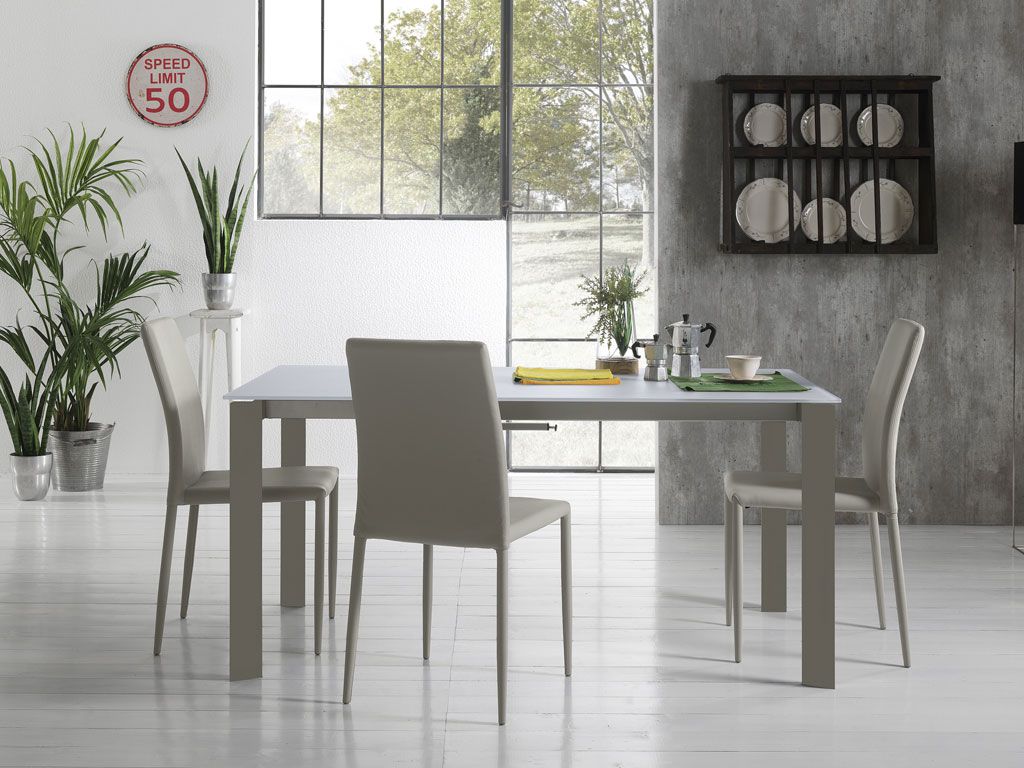stackable chair with metal structure completely covered in ecoleather. Colors: white, cappuccino, dove gray, charcoal.