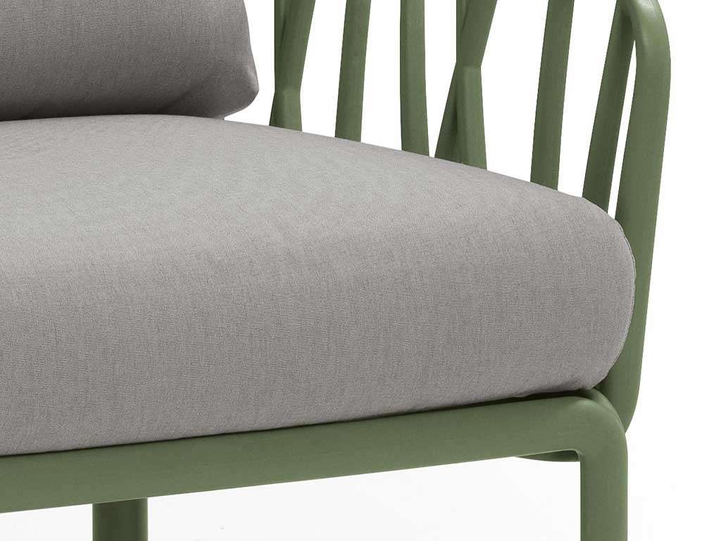 Modular upholstered seating system, sectional and configurable at will. The structure, inspired by the branches of the trees, characterizes the furniture and welcomes soft and colorful cushions in order to create your own open-air room.