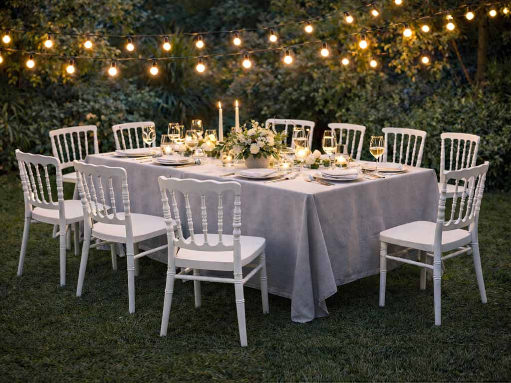 Lightweight and easy to move, they represent a strategic choice for hospitality professionals and for those who wish to stylishly furnish both outdoor and indoor spaces. Choose the Dallas Chiavari chair: among the best garden and ceremony chairs, designed to combine iconic design with maximum practicality.