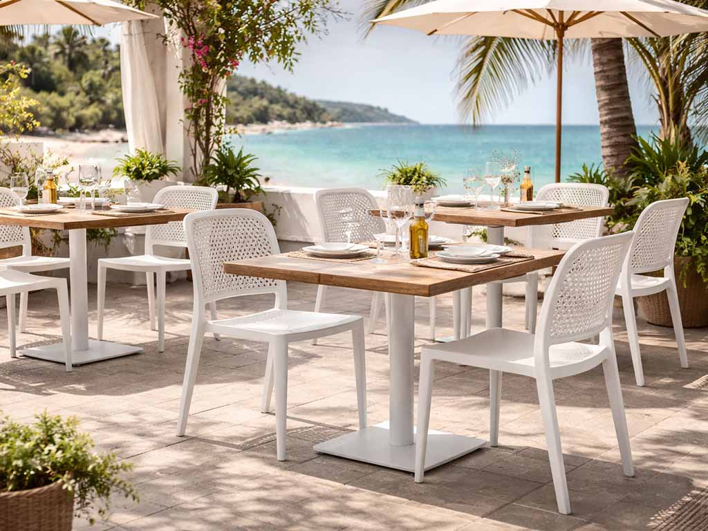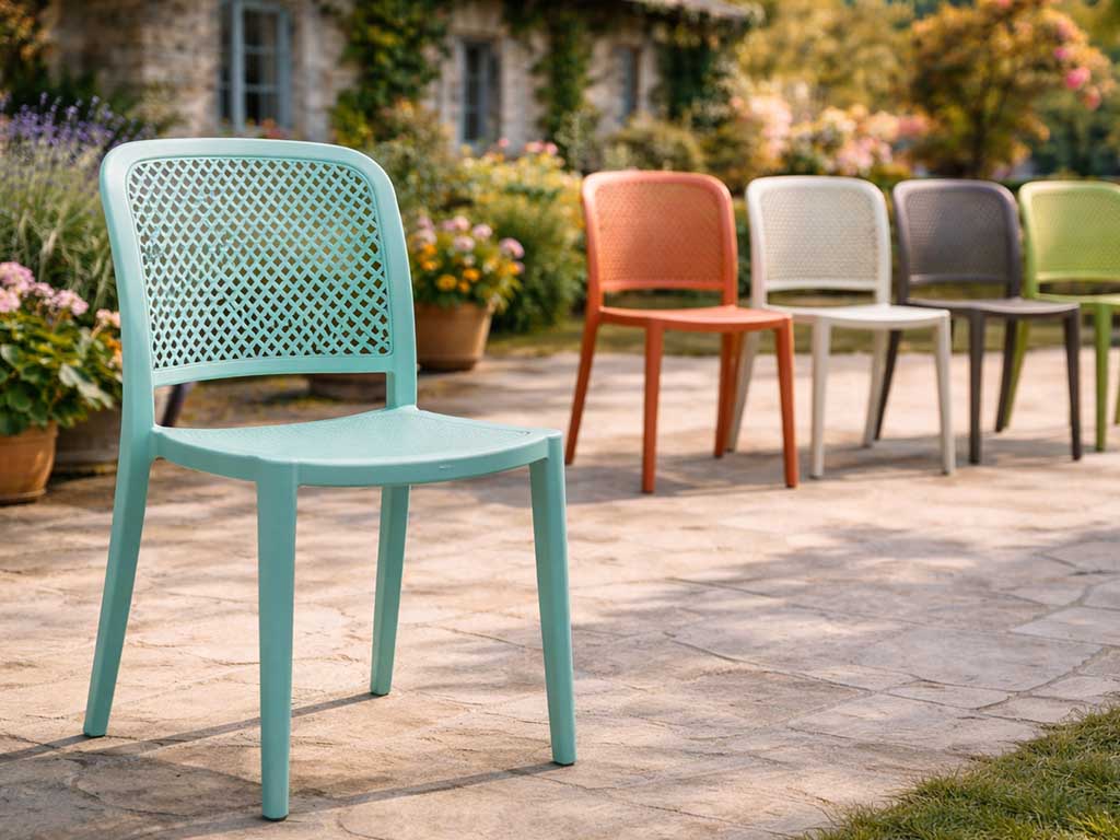 These polypropylene outdoor chairs represent the ideal solution for furnishing gardens, terraces, venues, and domestic environments with style. These garden chairs combine contemporary design, practicality, and durability, making them perfect for both home use and the contract sector.