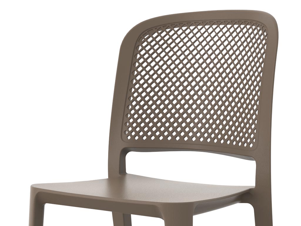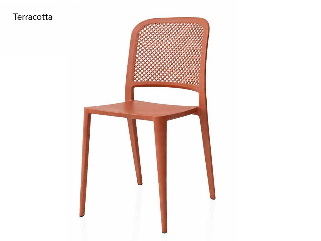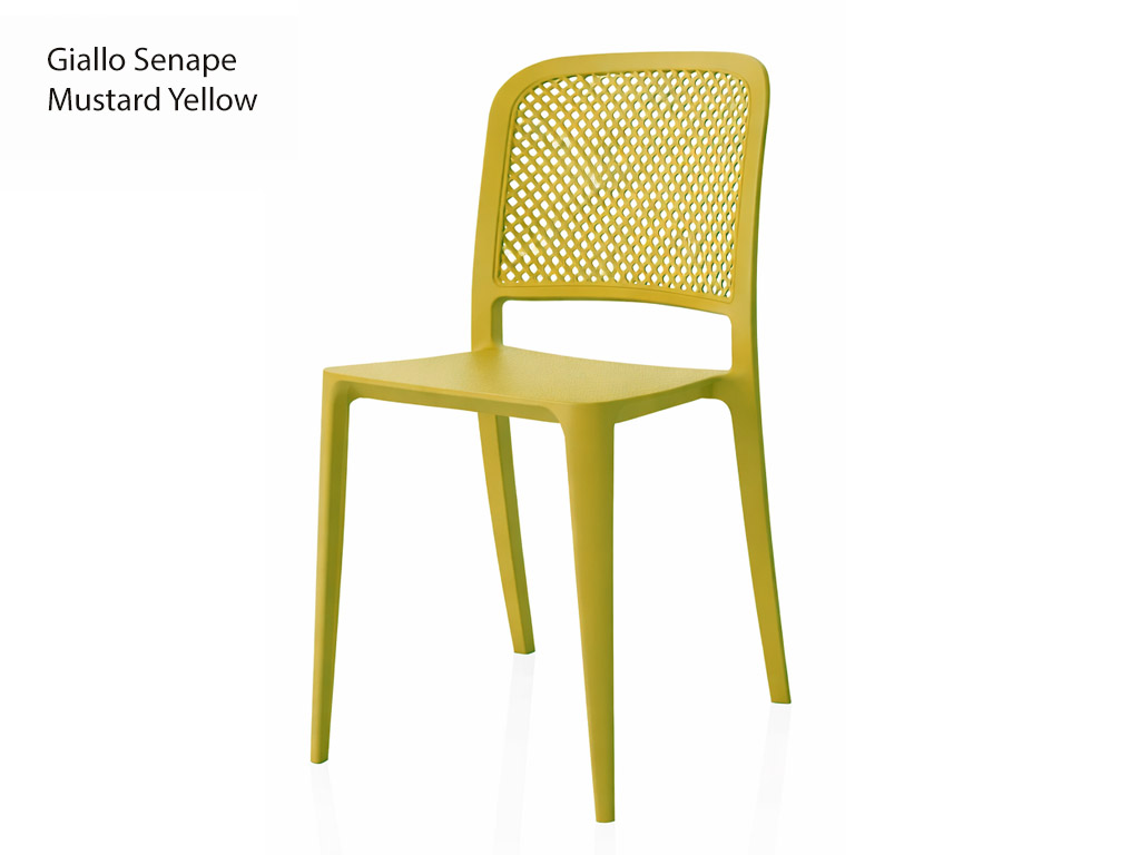 Made of 100% recyclable quality polypropylene, among the best polypropylene chairs, they guarantee lightness, strength, and resistance to atmospheric agents. They are therefore ideal as an outdoor chair for terraces, gardens, outdoor dining areas, and event locations, but they also adapt perfectly as a kitchen chair thanks to their refined design and ease of cleaning.