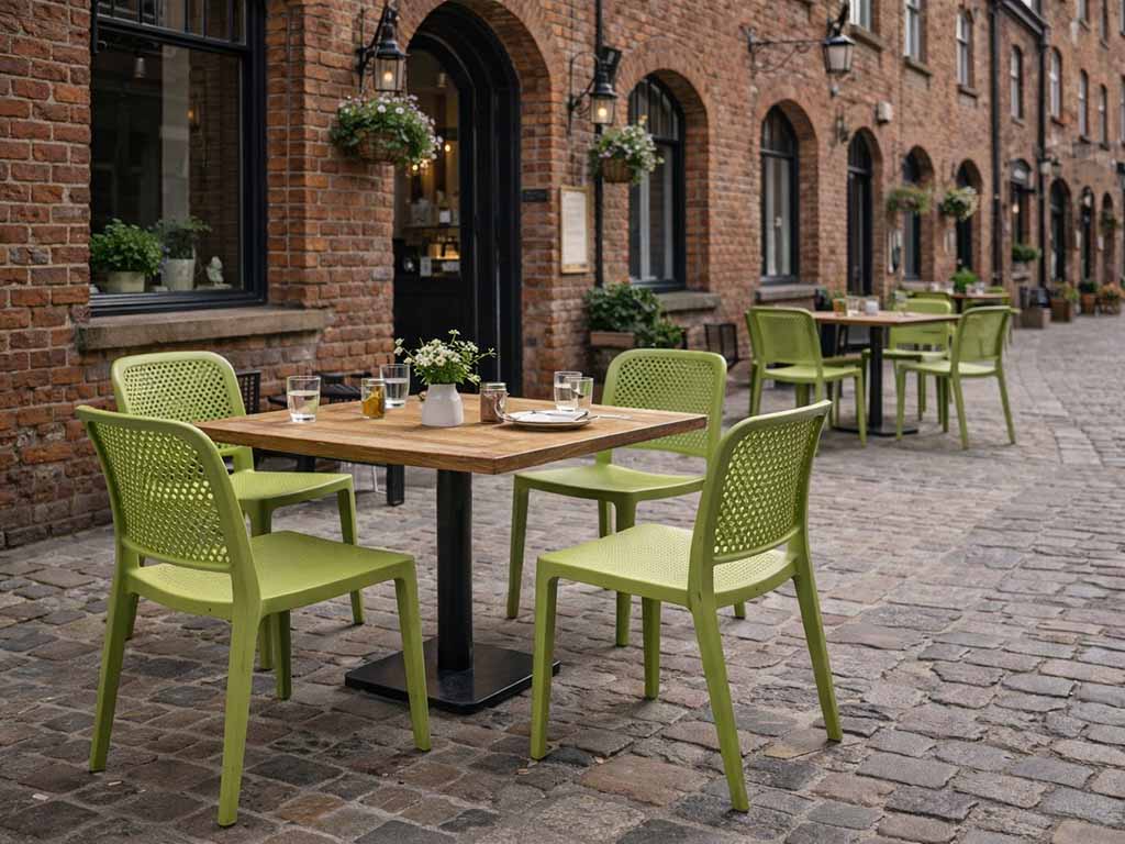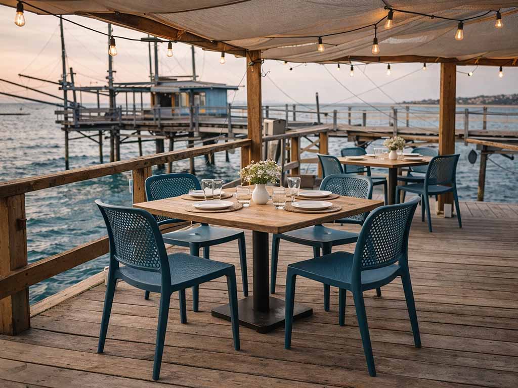 The modern design and the variety of available colors make these chairs extremely versatile: they can be used as restaurant chairs, bar chairs, bistro seating, or for outdoor venues, always ensuring comfort and elegance.