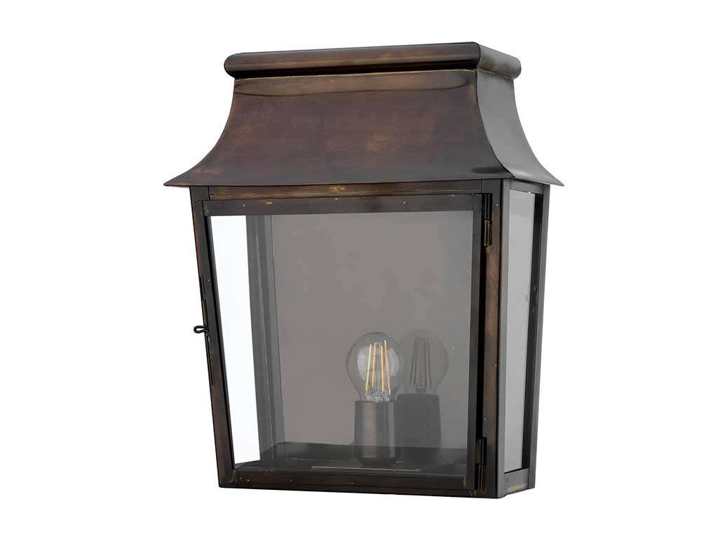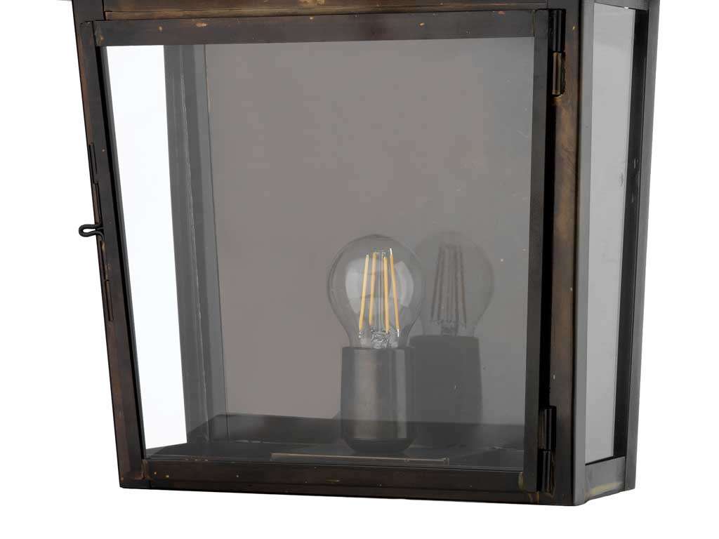Outdoor sconce, ideal as outdoor wall lamp, with transparent glass and Bronze or Dark Bronze frame. Suitable both as indoor lamp and covered outdoor lamp. The lamps are attached to the wall through a special slot on the back of the lamp. Venetian style lamp, ideal for historic residences, old country cottages and places full of charm and refined design. DIMENSIONS: Lantern H 40 L 31 x D 15,5 cm Lantern H 42 L 35,5 x D 16 cm Handmade lamp completely made in Italy, the result of an experience handed down from generations. The chandeliers are bound in tin-welded brass, particularly suitable for the wear and tear of time and humidity. These products are exclusively and strictly handmade, the passion and the craftsmanship of highly qualified artisans guarantee the value and authenticity of craftsmanship of all products. This production process makes each piece different from the other and represents the added value of craftsmanship. Handmade product made in Italy