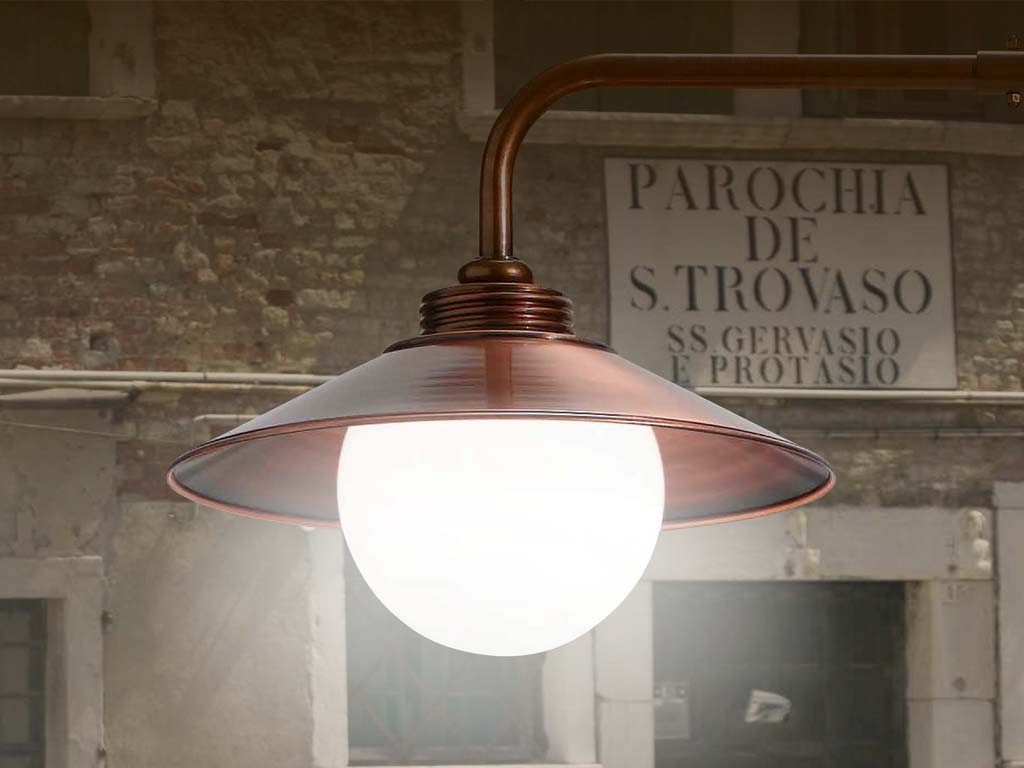 Outdoor wall sconce, wall lantern, brass wall light, perfect as garden wall lights. Line of lamps for outdoor use with brass structure, with burnished aged copper finish or polished shaded burnished finish and glossy white glass. High quality lamps with finishes that last over time, particularly suitable for villas, houses by the sea or elegant historic homes. Each item is realised with care and passion, it is enhanced by small distinctive features, typical characteristics now exclusive of craftsmanship. Dimensions: L 36,5 x P 53 x H 39 cm max 60W E27 IP44 220-240V (lightbulb not included) Colors and Finishes: BRRA – burnished / aged copper (model in the picture) BRSF – polished shaded burnished Glass: glossy white glass The ageing of these products is done manually so the color of brass may have different shades from those represented in the picture. These products are handcrafted with traditional and quality materials such as brass, expertly created by hand in order to obtain small and large lighting effects with a unique design and high quality finishes that last over time. Glass, blown by master craftsmen according to ancient processing techniques. Any small imperfections are to be considered as merits and traits of the refined workmanship and not manufacturing defects. Outdoor products are treated to live even near the sea. Made in Italy Product
