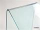 Pair of wedge-shaped coffee tables in transparent curved crystal. The two tables (a smaller and a bigger one) have the same shape; one enters the other so that they match and form together the same encumbrance.Their minimal design and small size make them ideal to be placed next to your couch or to an armchair, as one multifunctional coffee table.