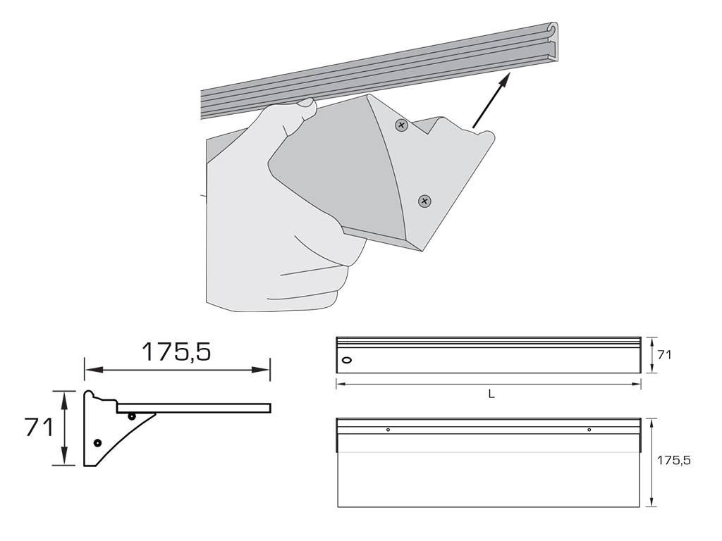 LED shelf realized in oxidized mat aluminium and tempered sandblasted glass.