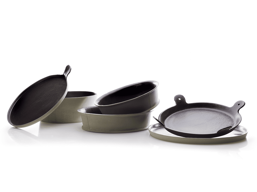 It can be used with the double function of tray, ideal to cook toasts, and of lid. Available in two sizes, the little version can be used as single-portion dish, while the big version can be used as dish to serve pizza on the table.