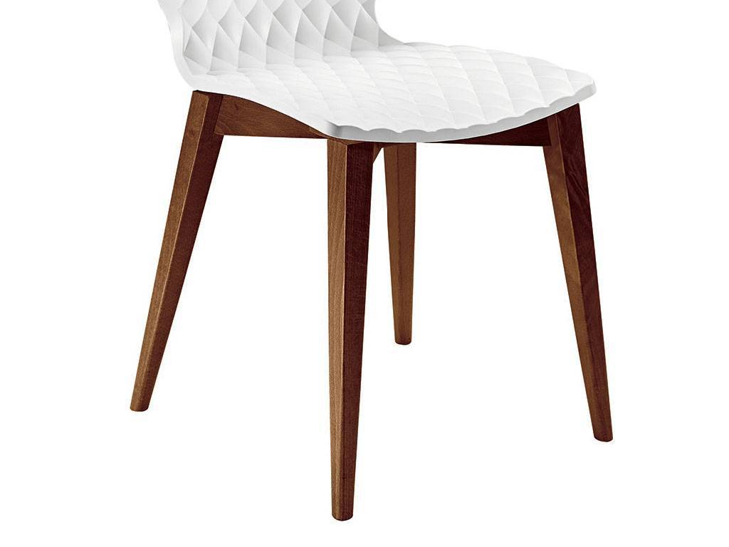 Seat in polypropylene available in 10 different colours, natural or stained beech frame. Uni is characterized by the effective texture effect padding on the front, with a glossy finish on the back. SIZE:L.48 W.52 H.80 (H.seat 47)Box Packaging n.2 products (Minimum Order)The price is referred to one single product