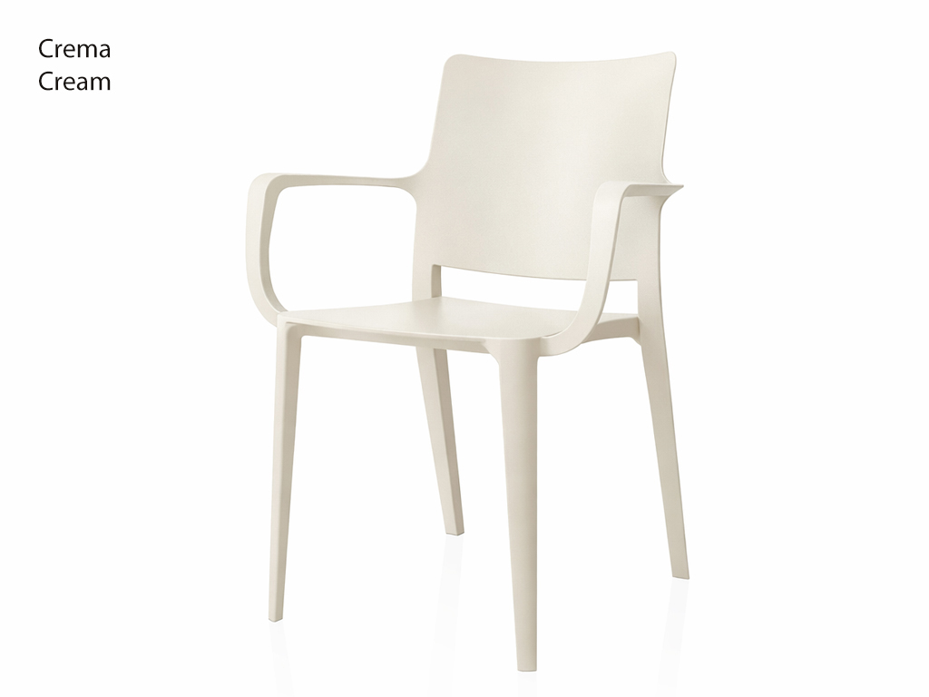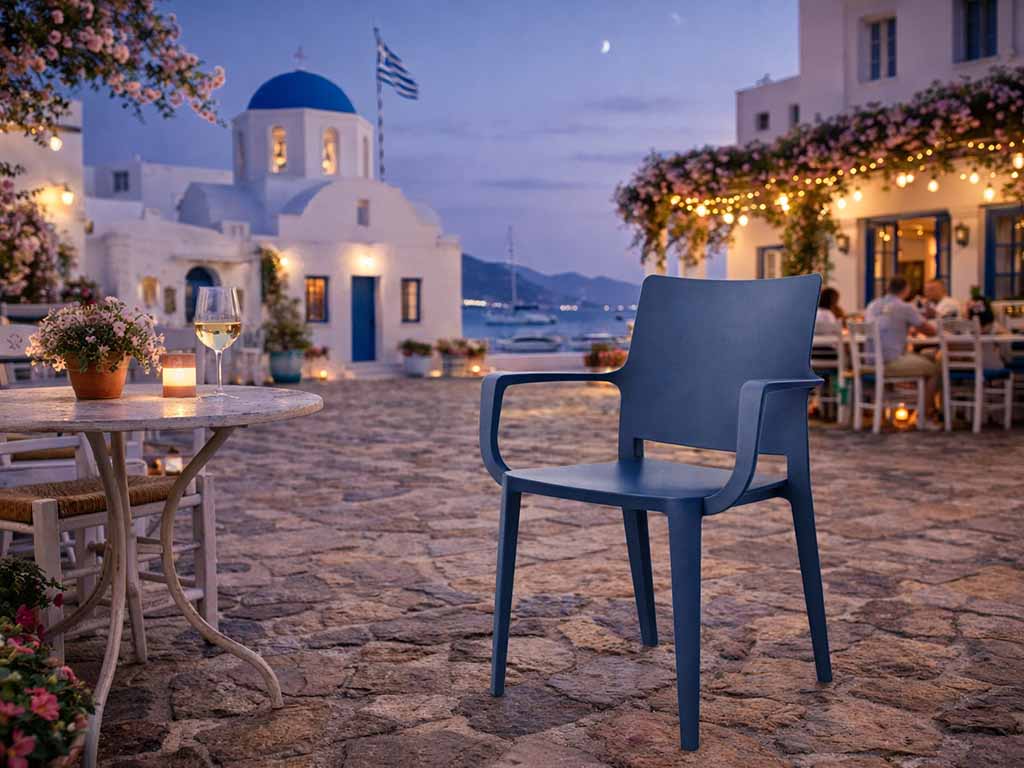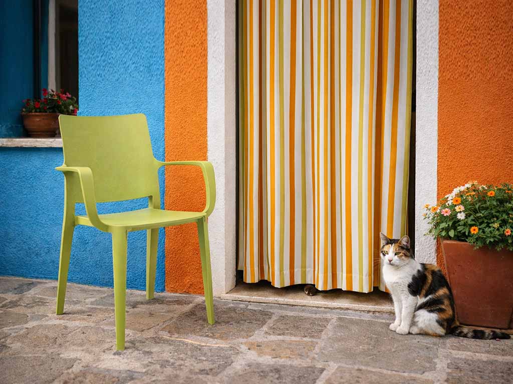 Thanks to their solid structure and clean, essential lines, these polypropylene chairs are perfect for hotels, restaurants, bars, communal spaces, and private homes, easily adapting to both indoor and outdoor environments. They are particularly appreciated as garden chairs with armrests, ideal for terraces, patios, and outdoor areas.