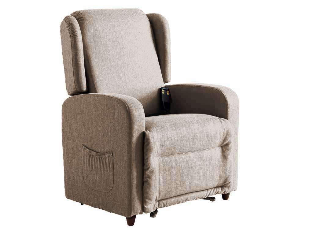 Reclining armchair, relax armchair, perfect for every corner of your home. Armchair with lift system perfect for the elderly, backrest with side wings for a comfortable support of the head. Comfortable and practical armchair, with structure in spruce and plywood. Upholstery and backrest cushion in polyurethane. Two-motor electric relaxation mechanism with independent movement of the footboard and backrest, equipped with a lift system, which gently raises those people who have difficulty to stand up autonomously. In the relaxing position the backrest is lowered to such an extent as to bring the body to a totally horizontal resting position ZERO GRAVITY 180 degrees, with a distribution of weight over the entire body and a total relaxation of the muscles. You can choose any position of the backrest or footrest you want, according to your liking. The movements of the armchair can be operated with a convenient remote control. Dimensions: L 73 - D 94 - H 108 cm Seat height from the ground cm. 51 Seat depth cm. 50 Seat width cm. 51 Max. depth in totally extended position cm.163. Payload 110 Kg Class 1 Medical device with possibility of tax deduction of 19% Removable cover: backrest cushion and seat cushion with footrest (semi-removable). Wide range of colors available (visible in the sample cards in the images of the product).