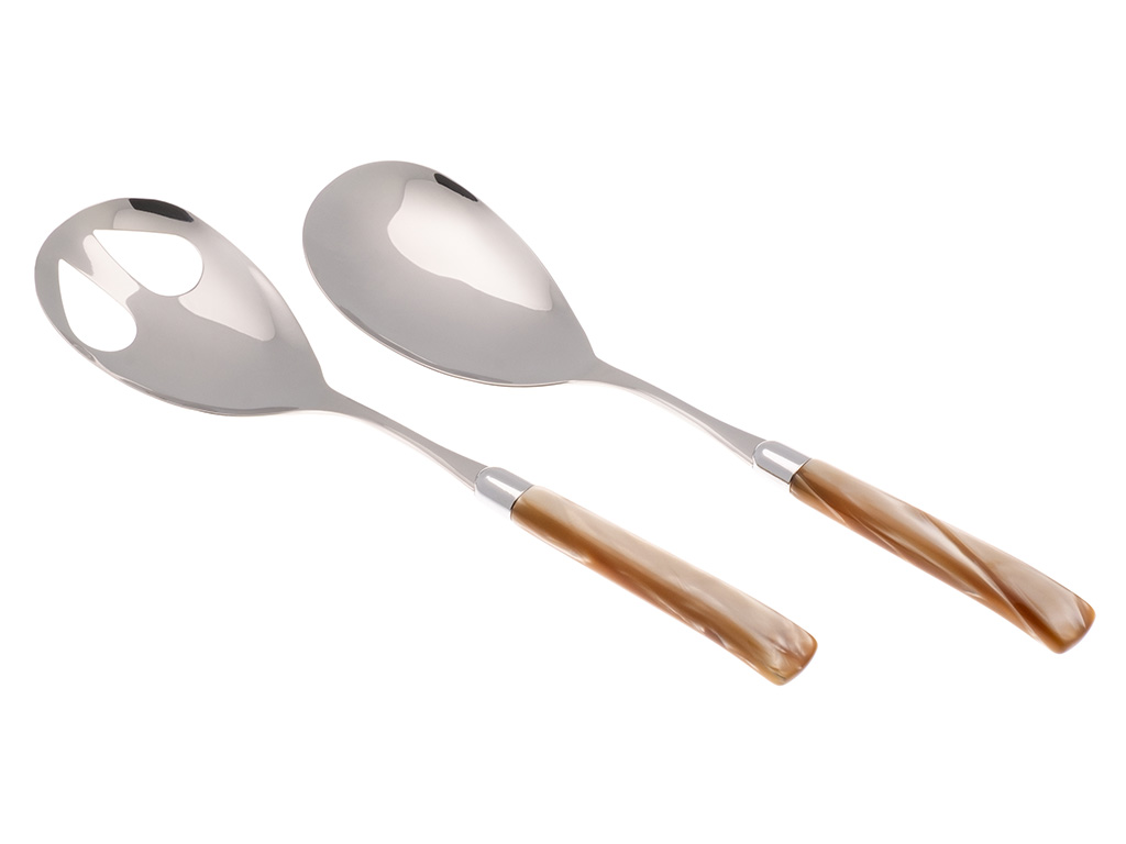 Set of 2 Salad Servers – Serrated Spoon and Smooth Spoon in Stainless Steel with Mother-of-Pearl Handle