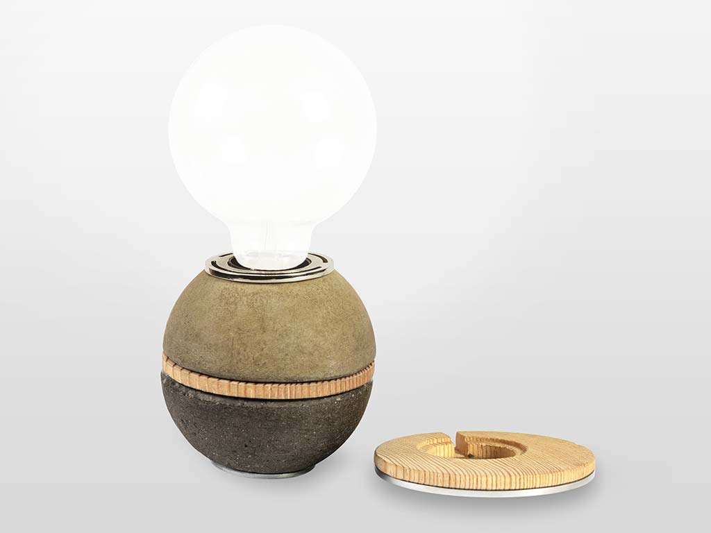 Small Abatjour made of Portland Cement and Light or Dark Larch Wood treated with beeswax.