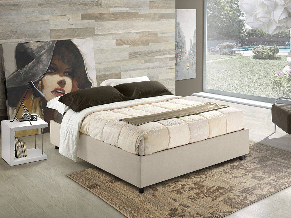 Sommier double bed, upholstered double bed without headboard, with fixed bed base.